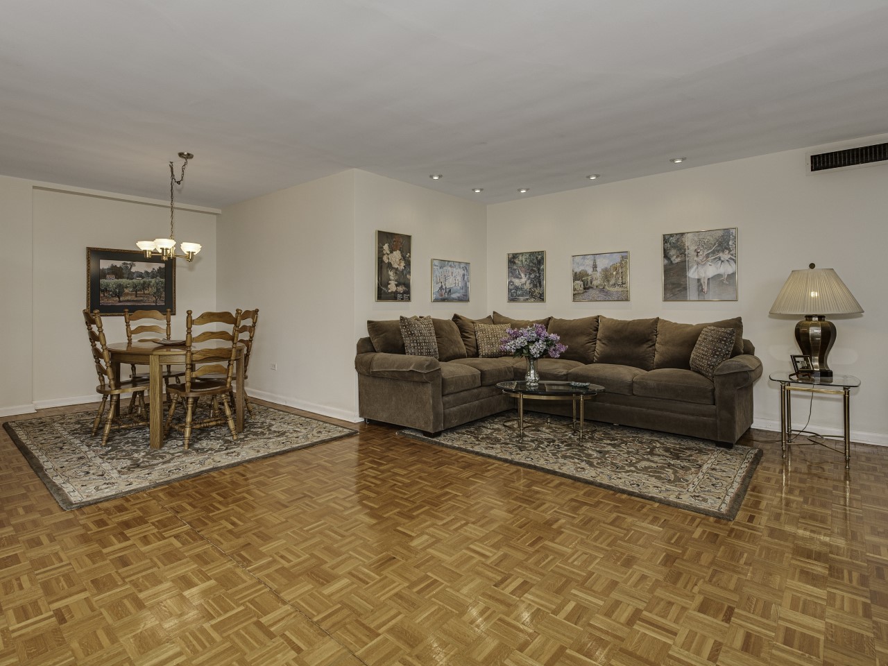 Lovely refinished parquet wood flooring in all rooms except for the kitchens and bath.