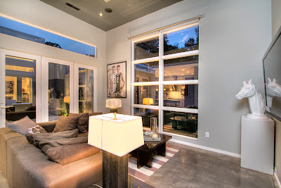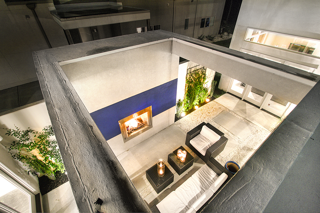 The private courtyard can also be accessed from the den, which is adjacent (open) to the kitchen and features floor-to-ceiling windows.