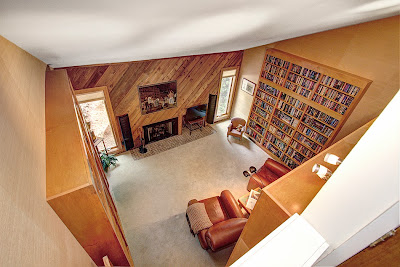 Inside the home has several levels that allow family members to have some privacy but still be a part of the action if they want. The library is open at the vaulted ceiling to the upstairs hall. So cozy with it's walls of bookshelves and fireplace.