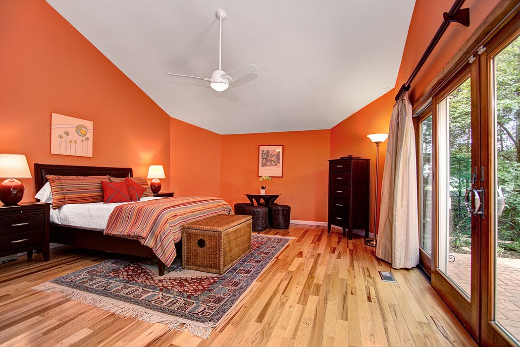 The main bedroom features a wall of windows that look out to another private patio. There is also a yoga room just off it.